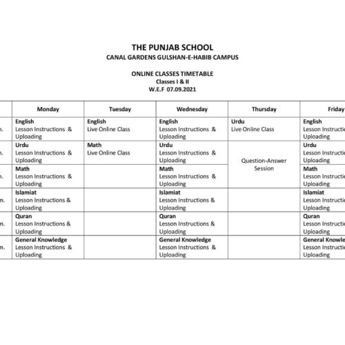 Online Class Time Schedule
